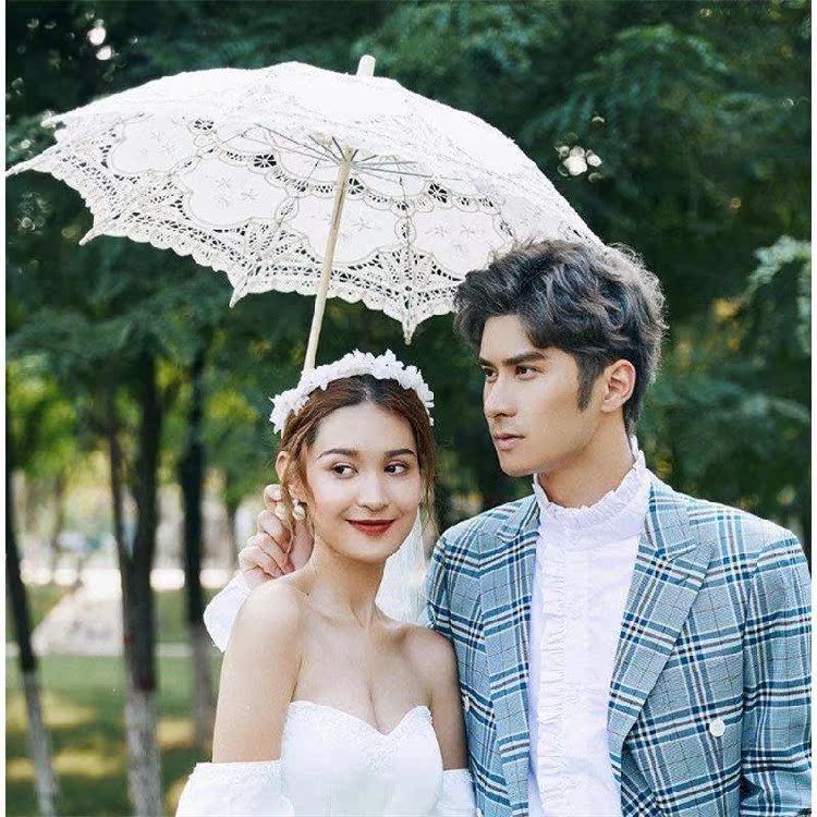 蕾丝白伞绣花伞影楼婚纱摄影道具拍照新娘洋舞蹈绸布工艺长柄雨伞热门设计联盟服务商