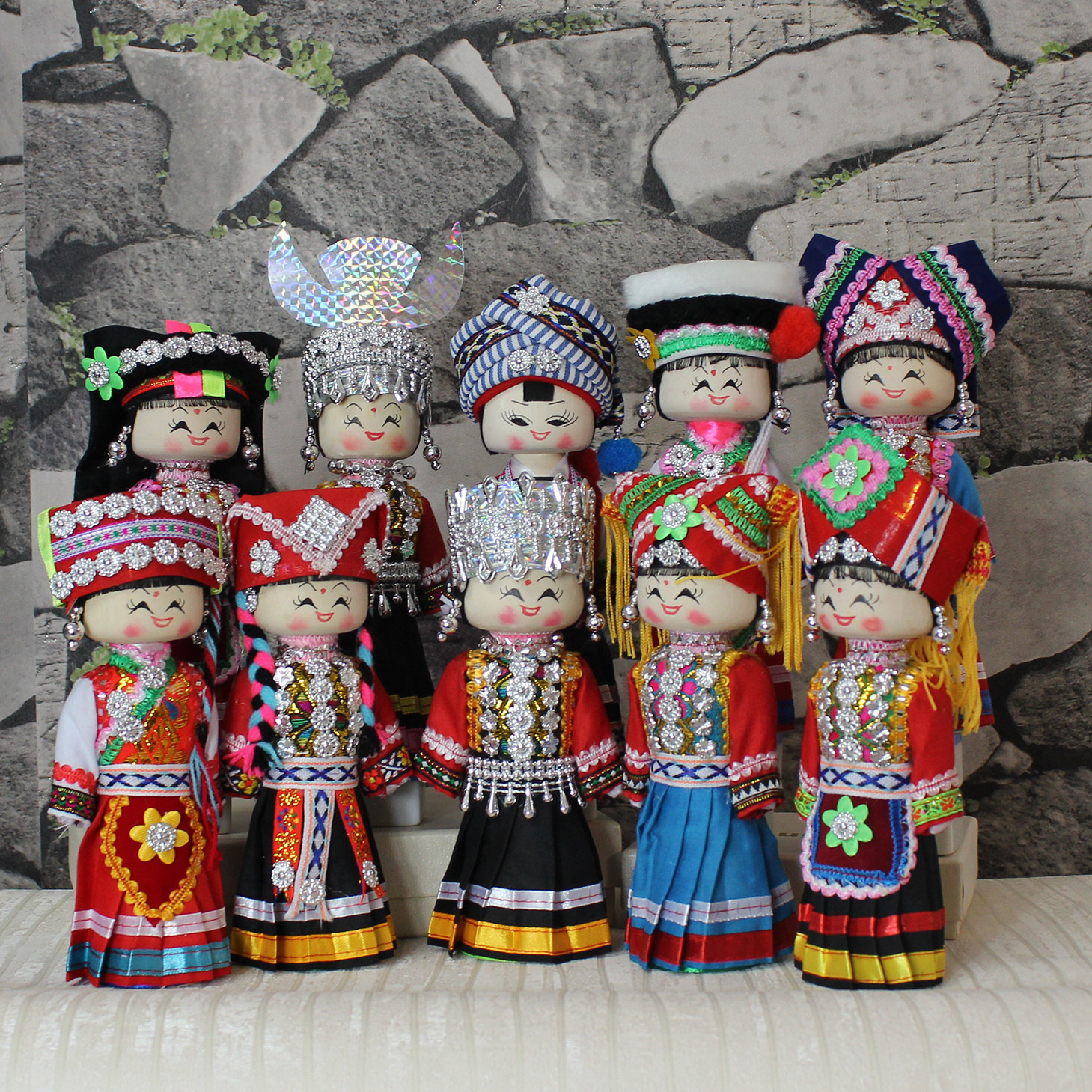苗族娃娃工艺玩具贵州摆品壮族件少数木制特色礼品民族服饰小壮族热门设计联盟服务商